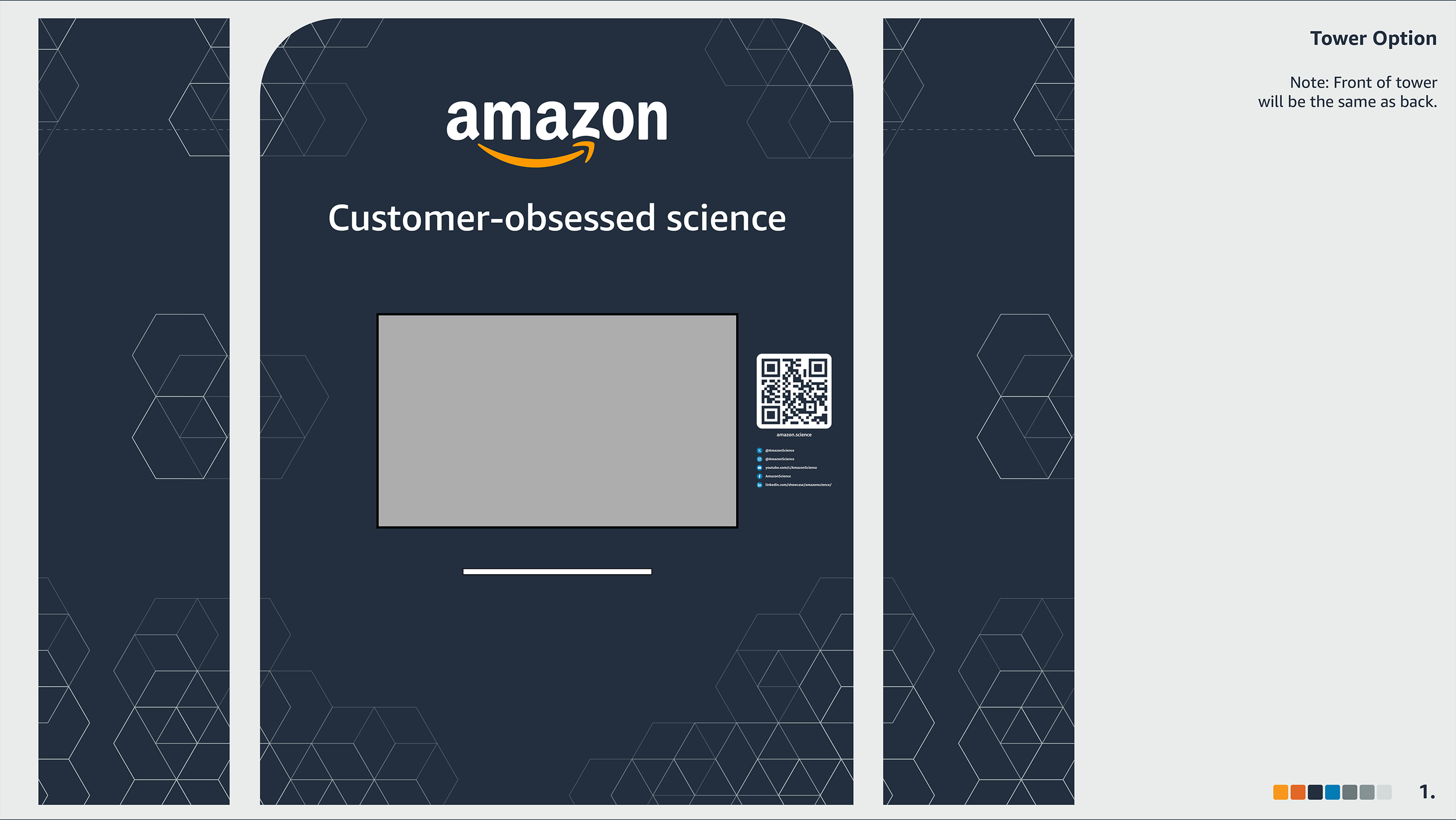 We settled on a high-contrast color scheme to showcase Amazon's palette while also incorporating accents from the Amazon Science design system.